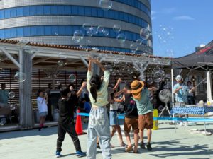 なかなか体験できない参加型のマジックや大きなシャボン玉作りに子供たちの目はキラキラ👀✨